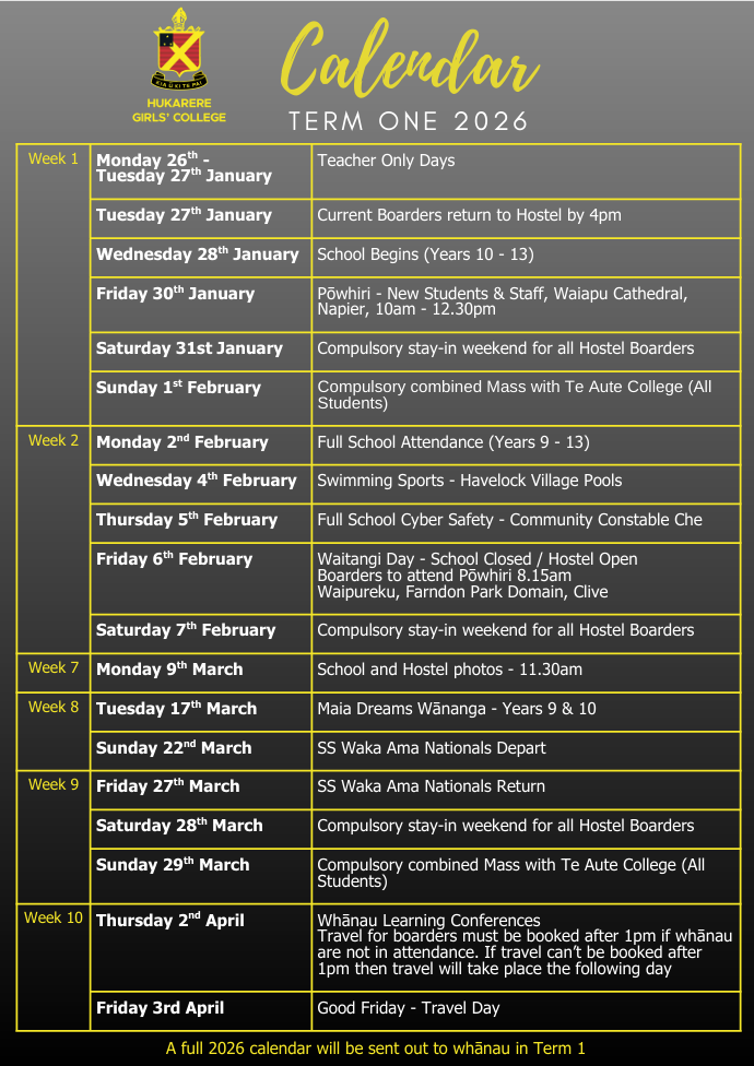 To download the 2026 Term 1 Calendar please click on the link – 2026 Term 1 Calendar.